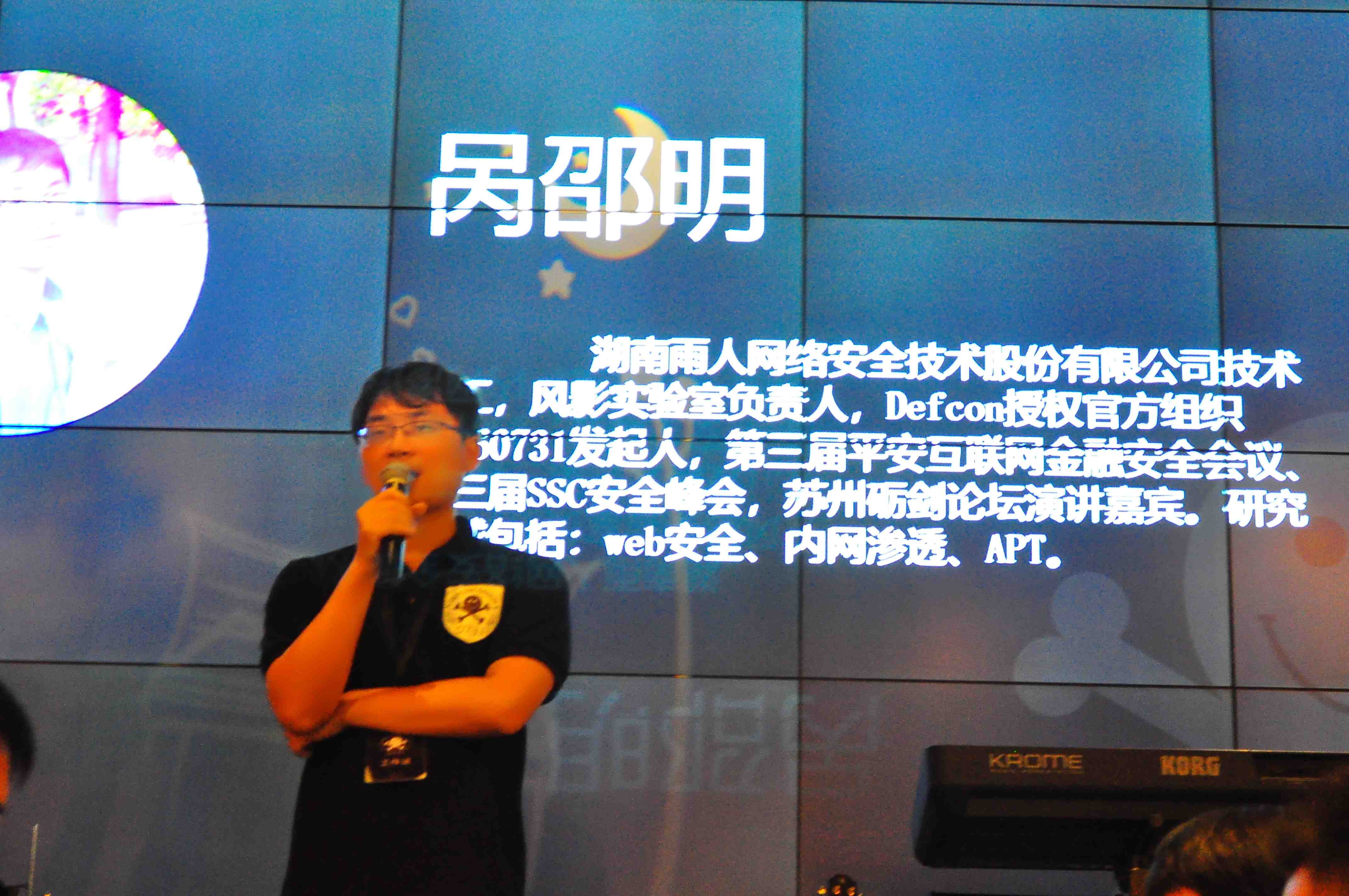 活动伊始,湖南雨人网络安全技术股份有限公司总工程师呙邵明和360安全研究院安全研究员李均分别对DEFCON GROUP 860731与DEFCON GROUPS全球社区进行详细介绍,并与现场人员进行交流互动。